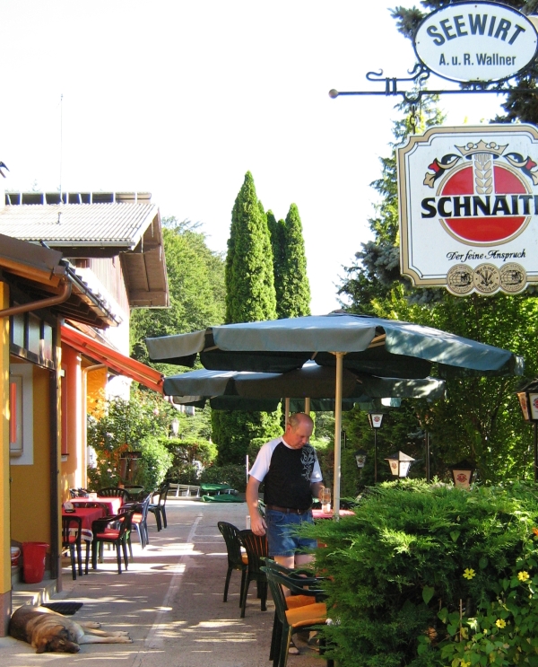 "Seewirt" (Camping-Schilder beachten).